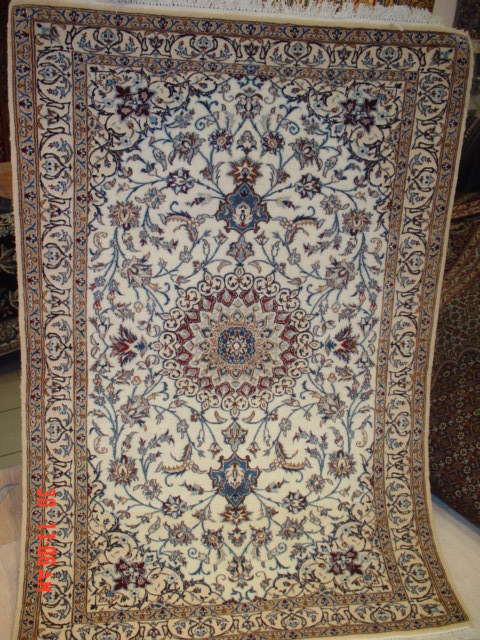 Für den Flor wurde beste Schurwolle und Natur Seide auf eine Kette von Bumwolle geknüpft.
