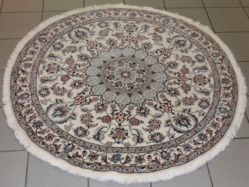Für den Flor wurde beste Schurwolle und Natur Seide auf eine Kette von Bumwolle geknüpft.