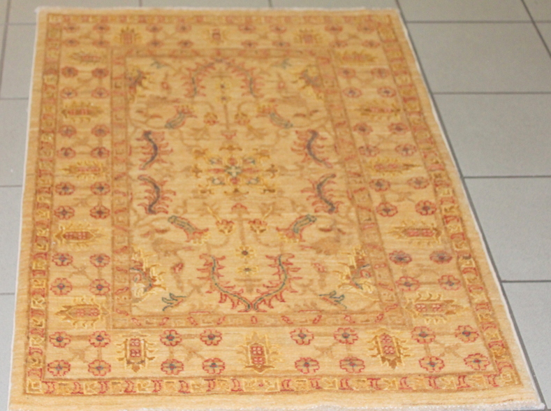 Für den Flor wurde beste Schurwolle auf eine Kette von Bumwolle geknüpft.